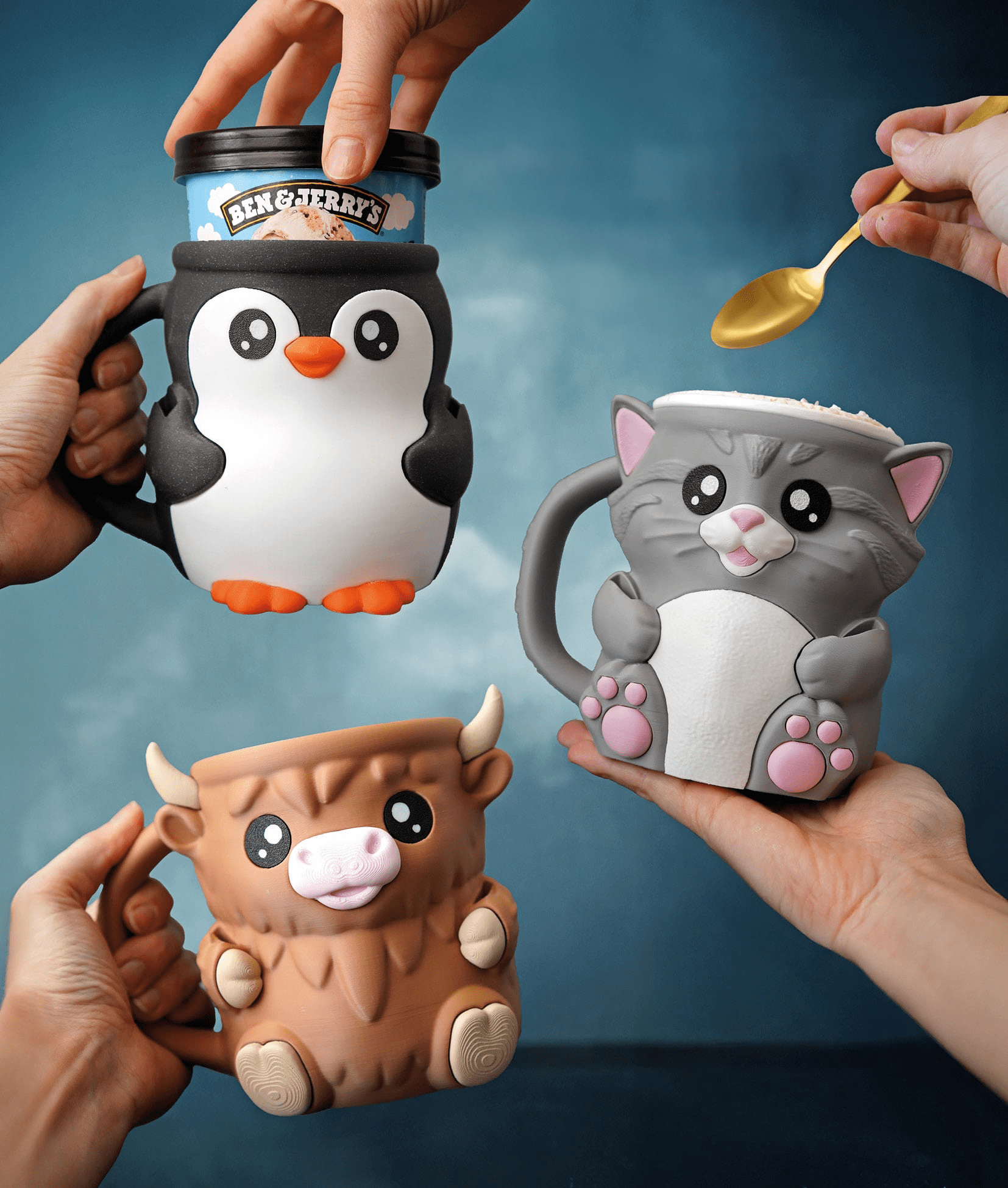 Scoop in style with Ferdinand, your cozy highland companion for late-night ice cream sessions. Designed to fit standard ice cream pints (like Ben & Jerry’s), this clever 3D-printed holder keeps your hands warm while your dessert stays perfectly cold — all while adding a big dose of moo-d!
