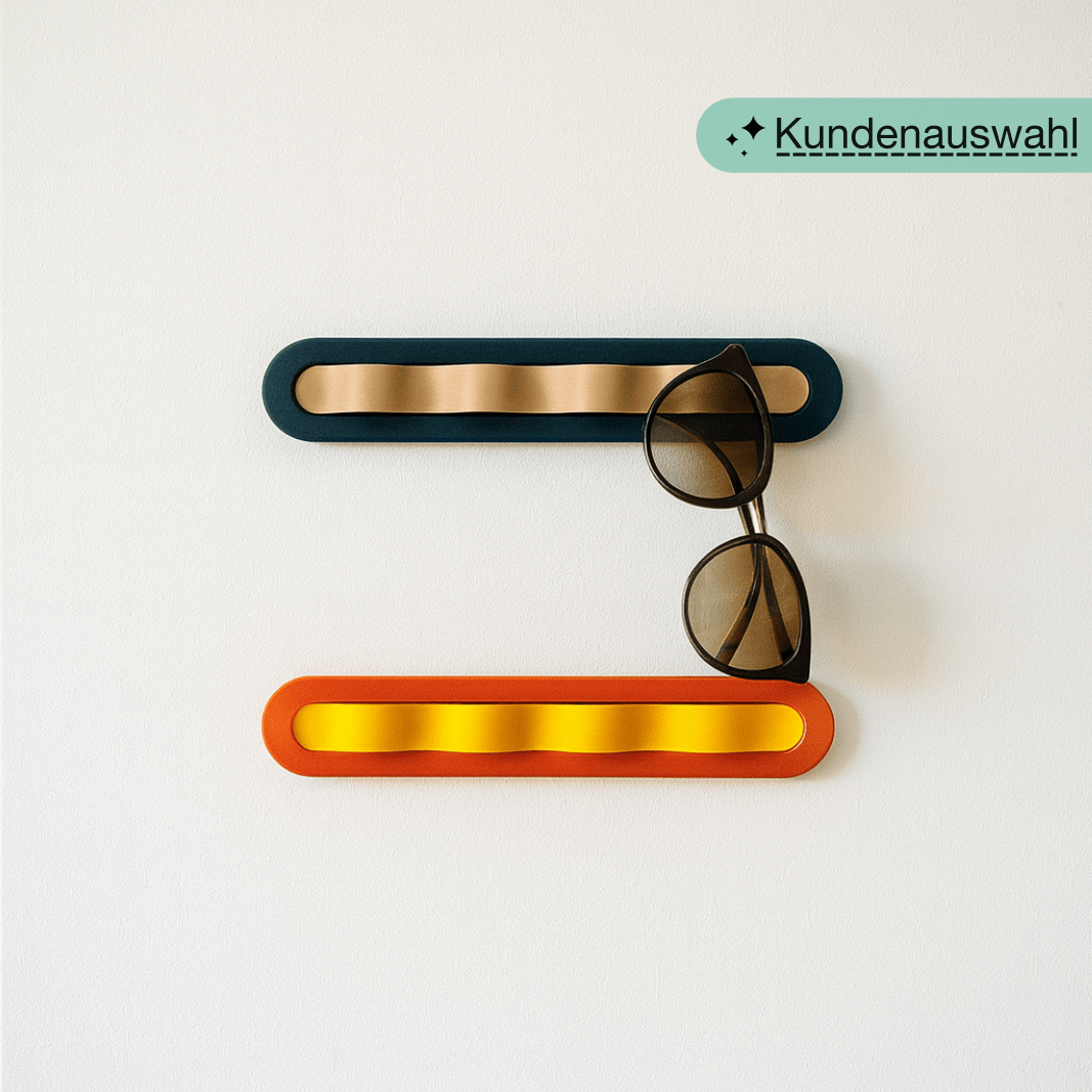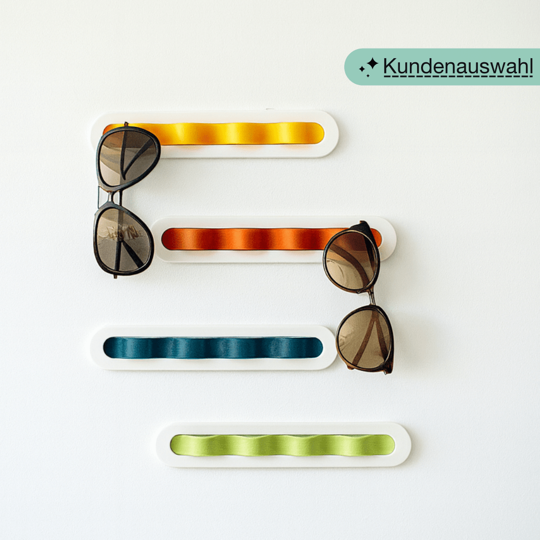 Made from durable, eco-friendly PLA, it mounts easily with adhesive on smooth walls, doors, mirrors, or tiles. Perfect for sunglasses, reading, or sporty frames — modern design, 3D printed in Düsseldorf.